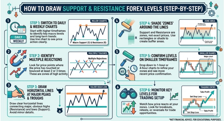 How to Draw Support Resistance Forex Levels (Step-by-Step)